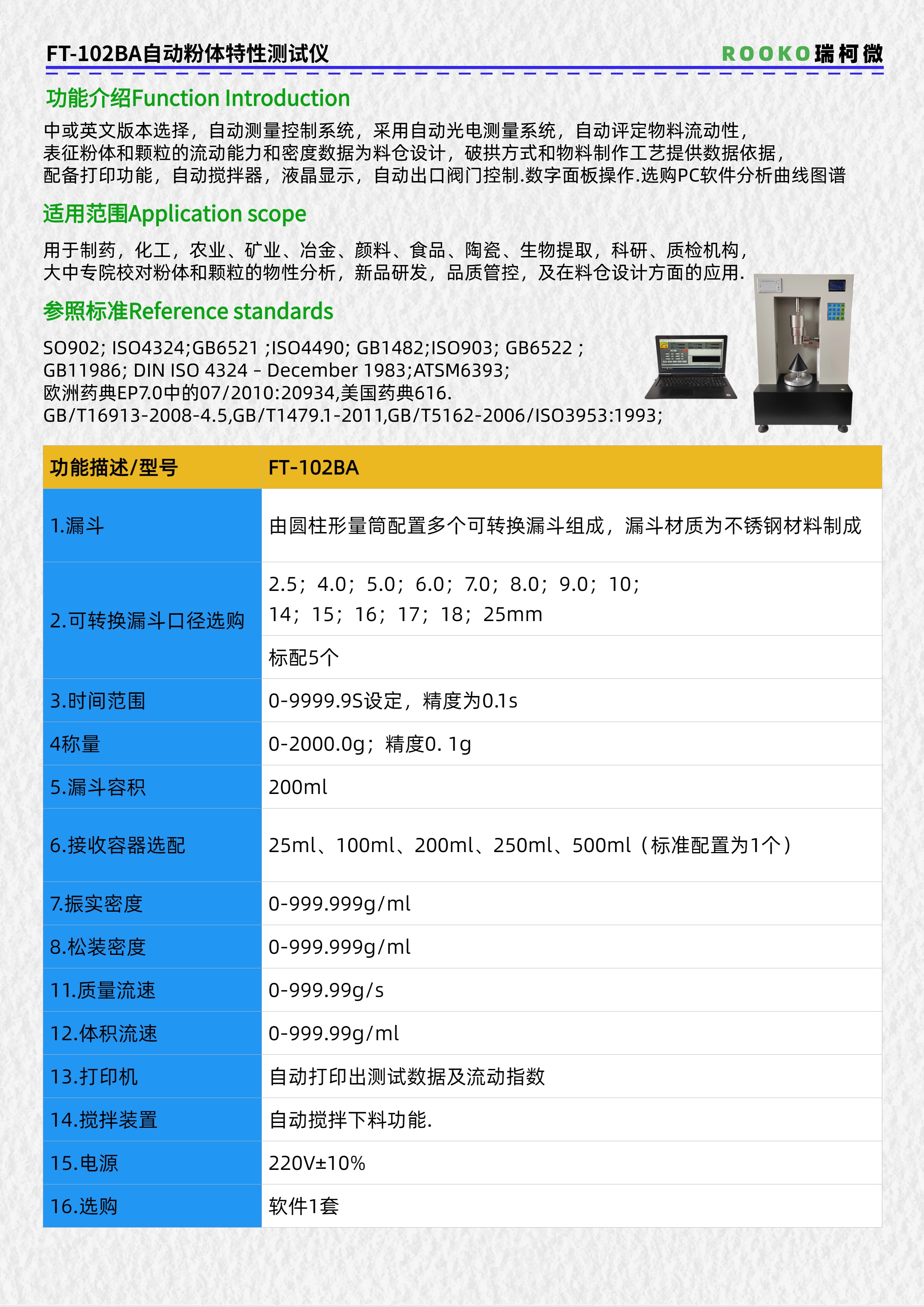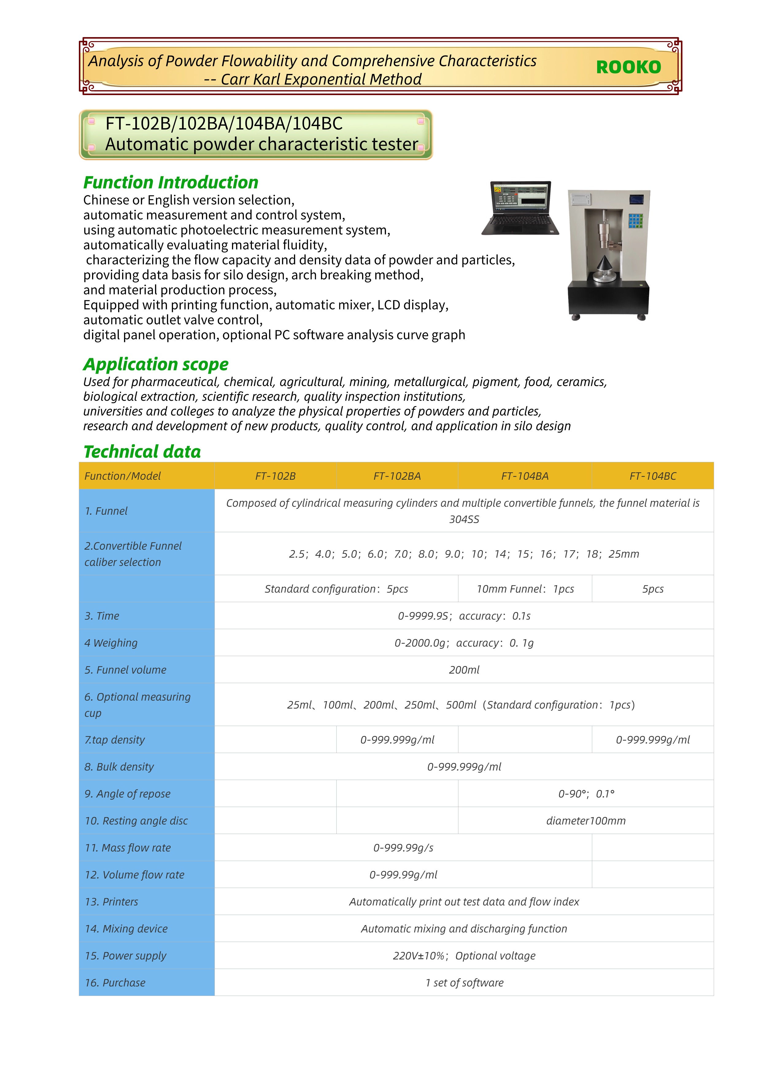 FT-102B 102BA 104BA 104BC粉體特性測(cè)試儀