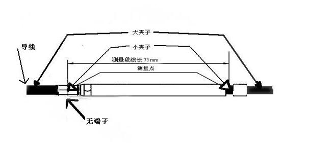 如上示兩圖中,圖1導線首端帶有端子,測量75mm長帶端子導線的兩端壓降,記錄數據備用;圖2中導線不帶端子,直接測量75mm長導線的兩端壓降,記錄數據;,用圖1中測得的壓降減去圖2中測得的壓降即為被測端子的壓降。